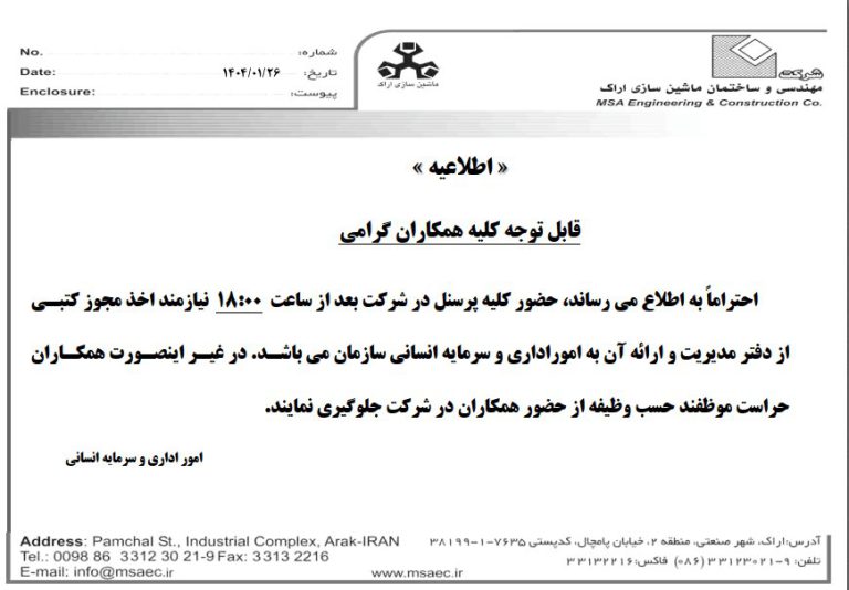 اطلاعیه اضافه کاری تعطیلات با مجوز قبلی